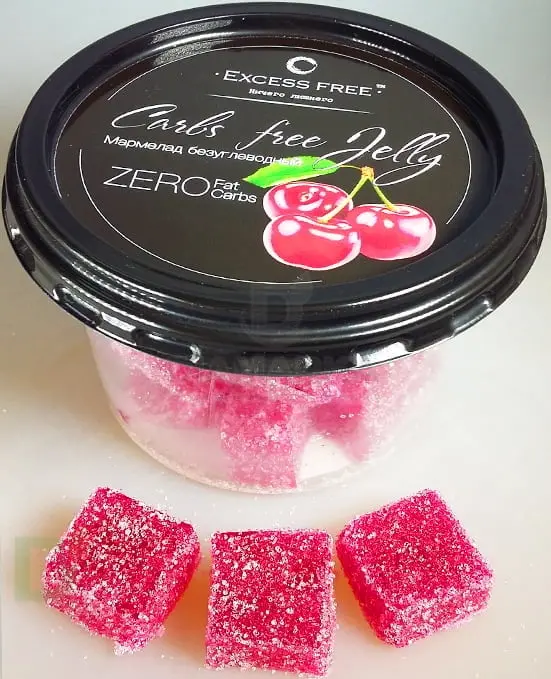 <p> Внимание! Скидка связана с ограниченным сроком годности товара. Срок годности уточнит менеджер. </p> <h3>Вишнёвый мармелад БЕЗ УГЛЕВОДОВ - спасение для диабетиков</h3> <p> Кому понравится лишний укол инсулина? С мармеладом марки "Ничего лишнего" он не потребуется, ведь здесь совсем нет углеводов! </p> <p> В составе только натуральные подсластители. Для производства всей продукции не используется синтетическое сырье. </p> <p>   </p> <h3>Кому стоит купить мармелад бренда Excess Free?</h3> <ul> <li>тем, у кого сахарный диабет 1 или 2 типа, ведь можно обойтись без укола инсулина</li> <li>тем кто следит за своим весом - очень мало калорий</li> <li>спортсменам, в рационе которых не бывает сладкого</li> </ul> <p> <br> Состав: вода очищенная, эритритол, желатин, пищевые волокна, лимонная кислота, сорбат калия, пищевой ароматизатор, пищевой краситель.<br> <br> Вес нетто: 150г<br> <br> Срок хранения: 45 суток при температуре от +8 до +18. <br> <br> <strong>Пищевая и энергетическая ценность на 100 грамм</strong><br> <br> 32,4 ккал / 135,65 кДж<br> <br> 0 г жиры<br> <br> <strong>0 г углеводы</strong><br> <br> 8,1 г белки </p> <p> Внимание! Срок годности данного мармелада менее 1,5 месяцев со дня производства. </p>