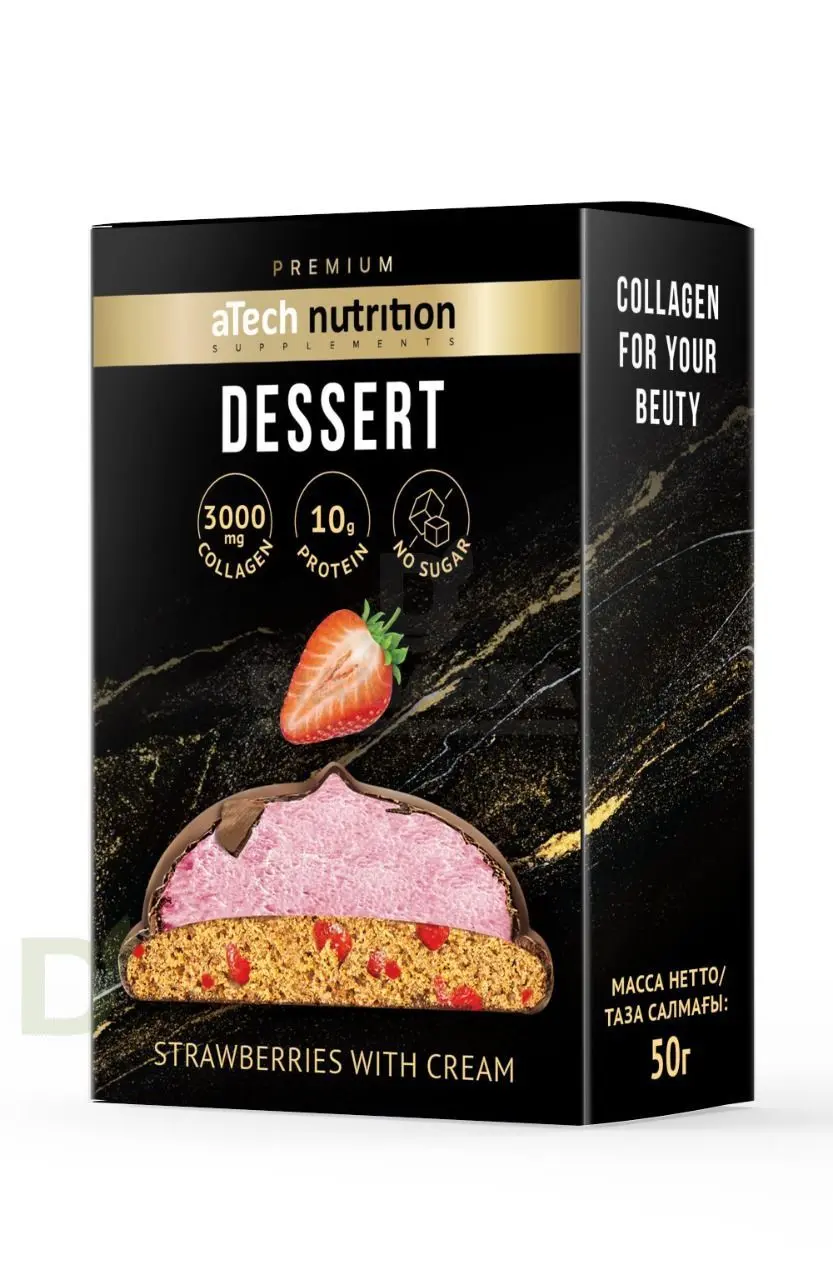 <h2>Протеиновый десерт без сахара с коллагеном</h2> Только представьте: вы едите десерт и в то же время получаете гастрономическое удовольствие, пользу для здоровья и красоты. Как тебе такое, Илон Маск, мммм?<br> <br> <b>Dessert - это лакомство, в основе которого лежит рассыпчатое печенье с кусочками сушеных ягод / фруктов / шоколада, покрытое невесомым суфле и нежнейшим шоколадом.</b><br> <br> Beauty-десерты с коллагеном YoBaton - как раз такая история. Вот их главные преимущества:<br> <ul> <li>всего одна порция десерта содержит суточную норму усвояемого коллагена</li> <li> повышенное содержание белка в десерте обеспечивает длительное чувство сытости. Одной пироженки будет достаточно, чтобы забыть про голод на 2-3 часа</li> <li> в составе нет сахара, а это значит: десерт не вредит зубам и содержит значительно меньше калорий и углеводов, чем обычные вкусняшки</li> <li> десерт идеален для тех, кто: занимается спортом, следит за питанием и фигурой, не употребляет сахар, ведет подсчет КБЖУ</li> </ul> <h3>В чем польза коллагена</h3> Коллаген - это белок, который синтезируется в человеческом организме. С возрастом, а также под воздействием определенных факторов его выработка может снижаться. Между тем, коллаген - важный компонент для здоровья и красоты кожи, волос, ногтей, он необходим для подвижности суставов.<br> <h3>Состав десерта</h3> Концентрат молочного белка, концентрат сывороточного белка, растворимые волокна кукурузы, гидролизованный коллаген, цукаты клубники резаные, масло кокосовое рафинированное дезодорированное, яичный продукт, эмульгатор- лецитин, влагоудерживающий агент-глицерин, разрыхлитель - гидрокарбонат натрия, регулятор- кислотности лимонная кислота, антиокислитель - аскорбиновая кислота, ароматизатор натуральный со вкусом клубники, консервант- сорбат калия. Состав суфле: растворимые волокна кукурузы, концентрат молочного белка, загуститель- желатин пищевой, влагоудерживающий агент- глицерин, ароматизатор натуральный со вкусом клубники, консервант- сорбат калия, краситель натуральный- кармин. Состав глазури: заменитель какао-масла не темперируемый лауринового типа, какао-порошок, молоко сухое цельное, эмульгаторы (лецитин соевый, Е476), ароматизатор «Ванилин».<br> <br> Масса нетто: 50 грамм