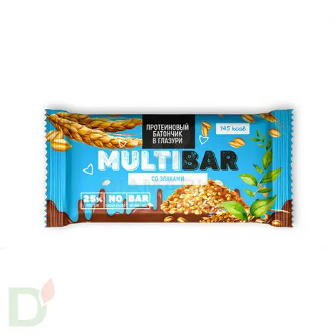 <h2>Высокопротеиновые батончики Мультибар без сахара</h2> Мультибар - продукты для правильного и здорового питания из натуральных ингредиентов. БЕЗ сахара, красителей и ГМО. За сладость в протеиновых батонах Мультибар отвечает изомальтоолигосахарид - природный посдластитель, который обладает сладким вкусом, при этом содержит в разы меньше калорий и углеводов, чем сахар.<br> <br> <h3>Преимущества протеиновых батончиков Мультибар</h3> <ul> <li>пониженное содержание углеводов и калорий</li> <li> не вредят зубам</li> <li> очень сытные и питательные, тк на 20% состоят из белка</li> <li> удобно брать с собой</li> </ul> Мультибар - нежный протеиновый батончик, покрытый шоколадной глазурью. Вкусно, сытно и по калориям приятно. Удобно брать с собой, куда бы вы не направлялись!<br> <br> Масса нетто 40 грамм<br> <h3>Состав Злакового батончика Мультибар</h3> Кондитерская глазурь(подсластитель изомальтоолигосахарид, заменитель какао-масла, какао-порошок, эмульгатор-лецитин соевый Е322,ароматизатор ), кокосовое масло, курага, чернослив, сывороточный молочный протеин, подсластитель изомальтоолигосахарид, гречневый пек(гречневая мука), семечка подсолнечника, арахис, кунжут, ароматизатор пищевой, консервант (сорбат калия). При чрезмерном употреблении может оказывать слабительное действие. Для непосредственного употребления в пищу как продукт с высоким содержанием легкоусвояемых молочных белков и пищевых волокон.<br> <h4>Пищевая и энергетическая ценность на 1 батончик</h4> Белки 10<br> Жиры 3,3<br> Углеводы 15,7<br> Пищевые волокна 4,3<br> 130 кКал